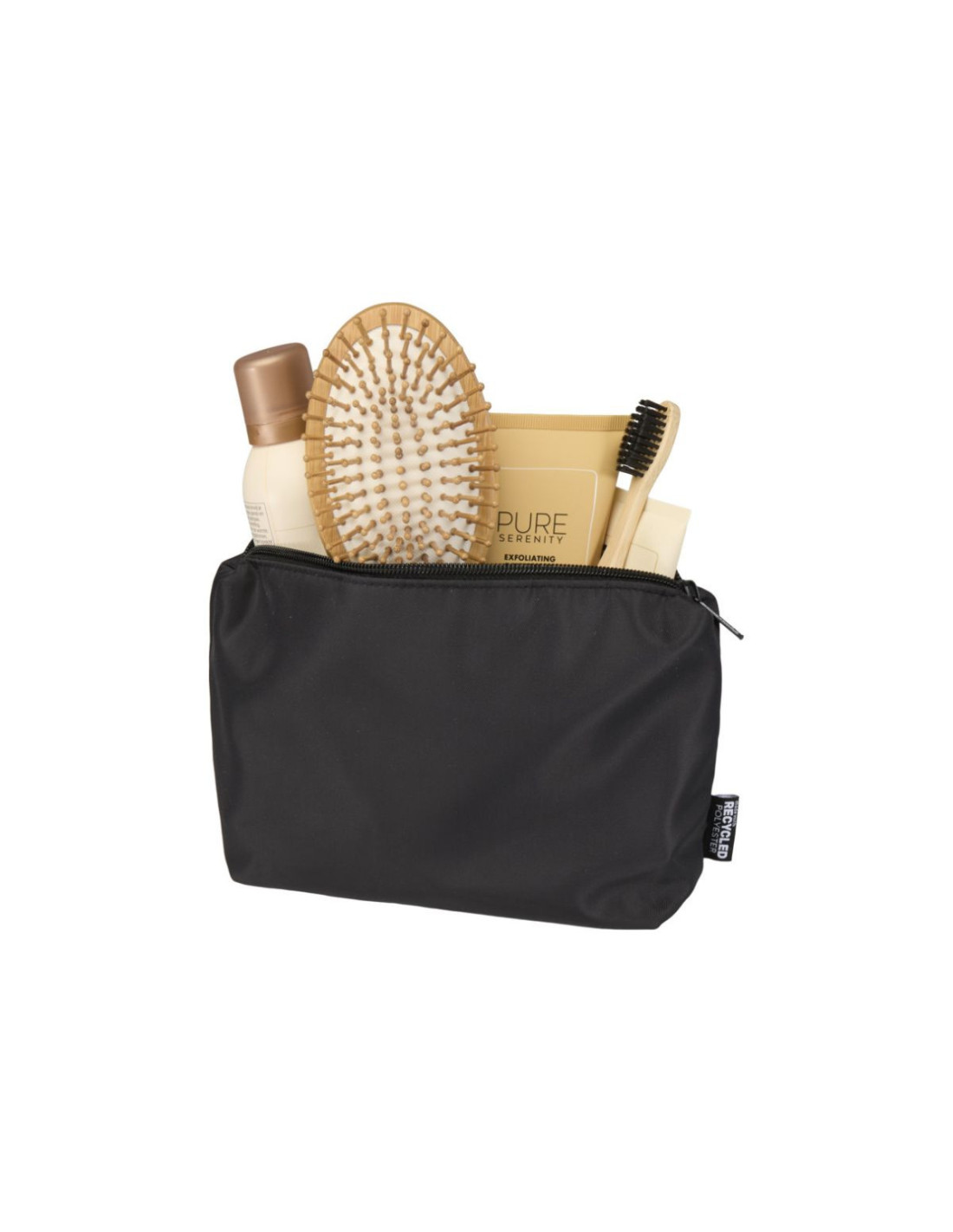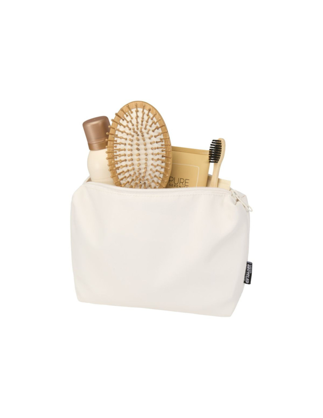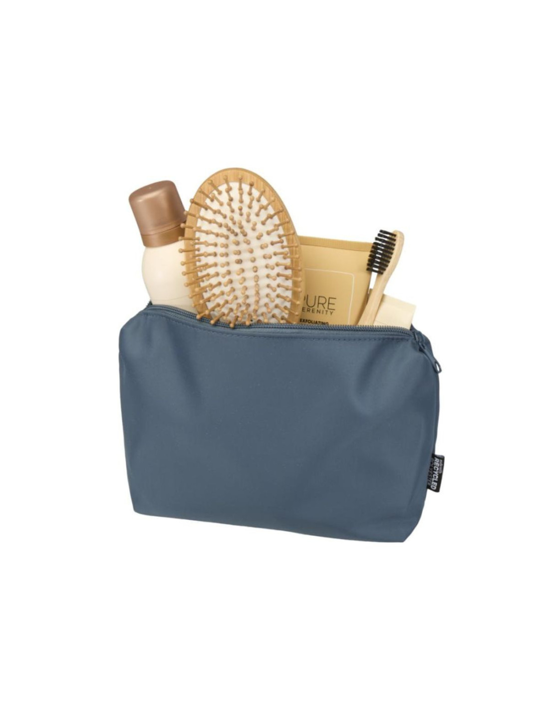 El neceser de viaje reciclado "Trip Aware™" es una solución compacta y funcional para transportar tus artículos esenciales con total comodidad. Fabricado en poliéster reciclado de sarga 290D, con forro de punto y RPET 210D con poliuretano, destaca por su diseño minimalista y duradero. Su compartimento principal ofrece espacio suficiente para artículos de aseo u objetos pequeños, siendo ideal para viajes cortos o uso diario. Incorpora tecnología Aware™, que permite rastrear el origen y recorrido del producto mediante código QR, aportando transparencia en la cadena de suministro. Capacidad: 2 litros.
