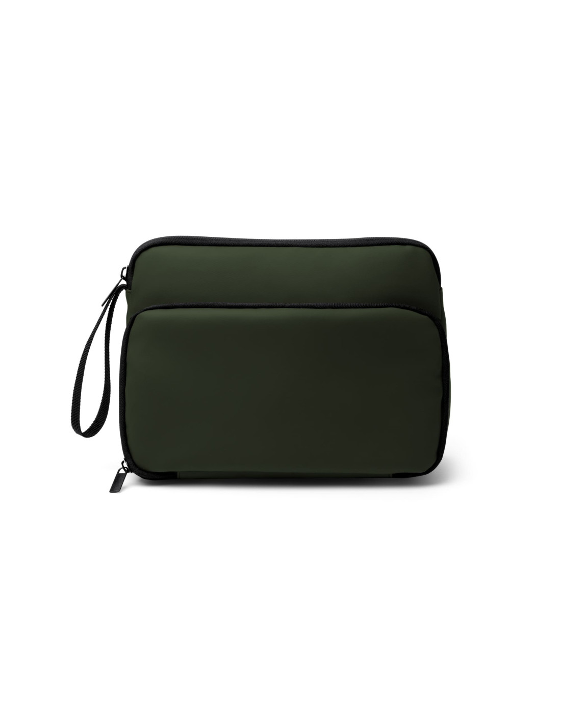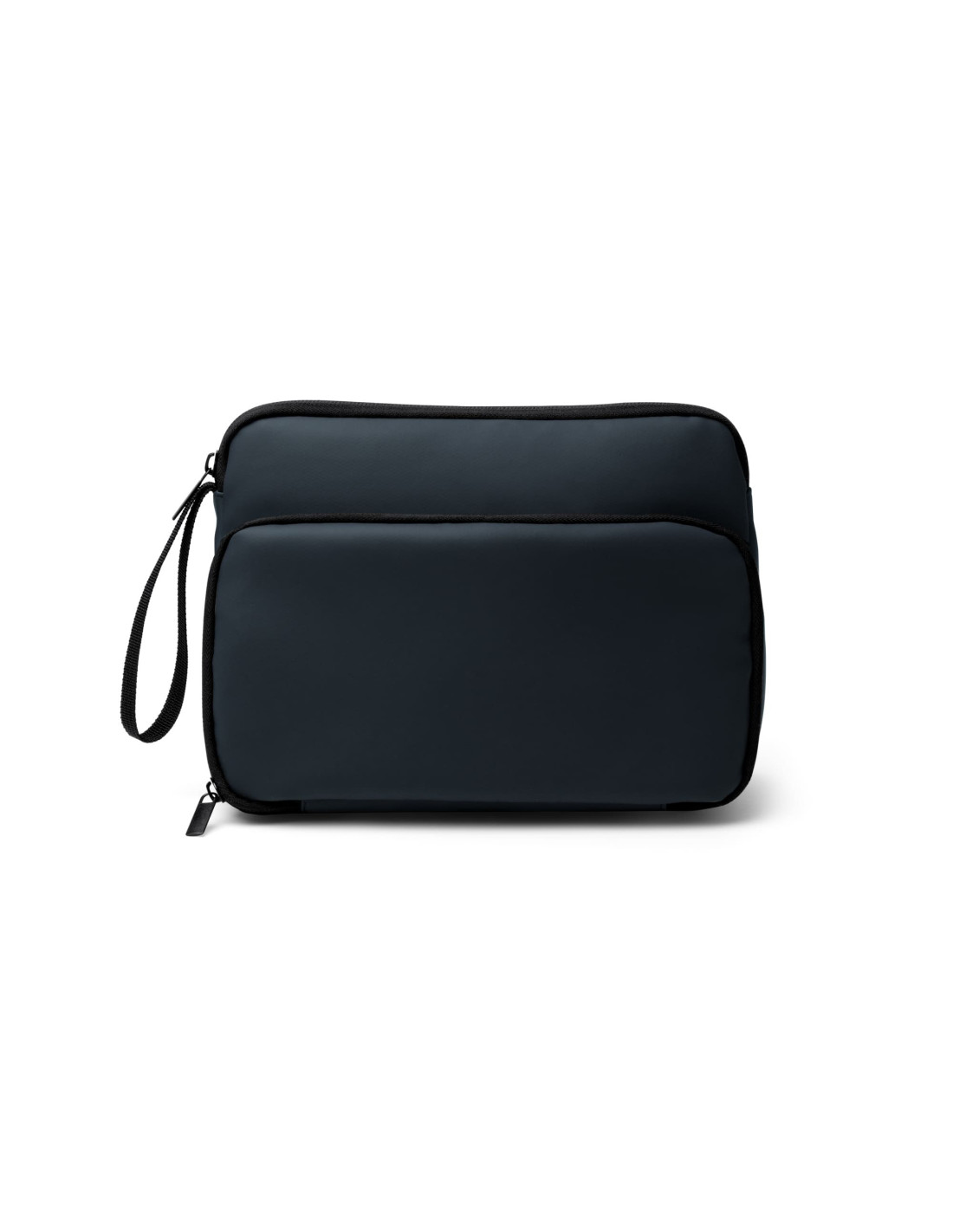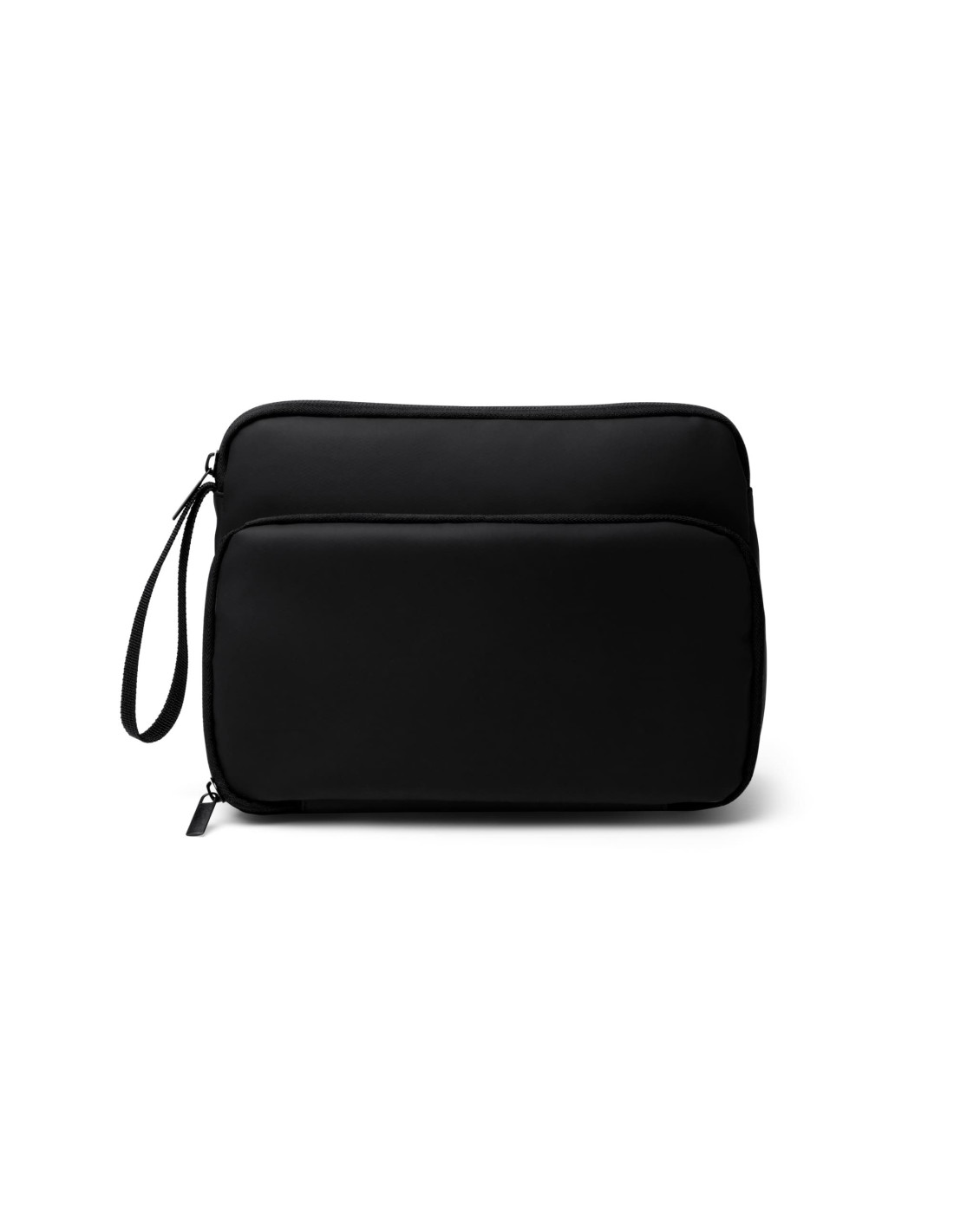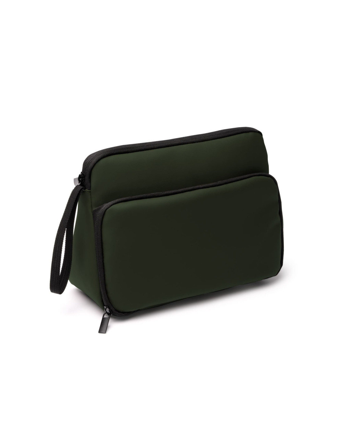 Neceser fabricado en polipiel, un material sintético suave y resistente, con diseño triangular y estructura acolchada. Dispone de un compartimento principal con bolsillos interiores de rejilla y apertura completa mediante cremallera doble. Incluye separadores elásticos para organizar artículos de higiene o cosmética, además de un práctico bolsillo frontal. Su asa de transporte permite llevarlo cómodamente en viajes, eventos o promociones. Una opción funcional y perfecta para regalar como neceser personalizado con el logo de tu empresa o evento.