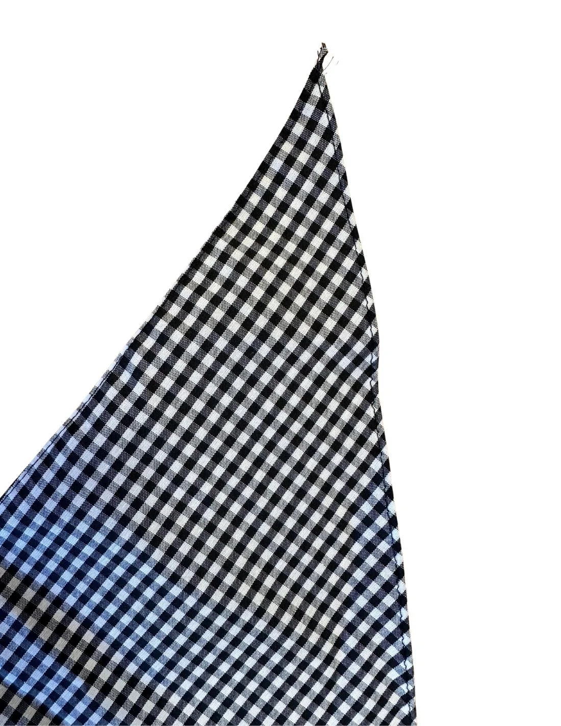 Pañuelo de Fiesta con cuadros Vichy fabricado en poliéster 70% y algodón 30%. Esta cómoda pañoleta es triangular con una medida de 70 x 70 x 100 cm, ideal para celebraciones, fiestas, eventos y festejos populares. Pedido mínimo de 50 unidades en múltiplos de 10 unidades. Pañuelo con terminación en pespunte para reforzar el acabado y darle más durabilidad.
