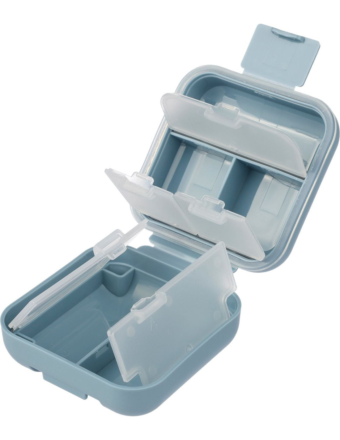 Pastillero de PP con 5 compartimentos individuales, cada uno con su propia tapa para mantener las dosis organizadas y seguras. Incluye cierre de clip, lo que evita aperturas accidentales y garantiza un transporte cómodo y fiable. Sus medidas de 6 x 6,6 x 3,4 cm lo convierten en un accesorio compacto y práctico para llevar en el bolso, mochila o maleta. Ideal como regalo promocional en el sector salud ya que es un artículo de uso diario.