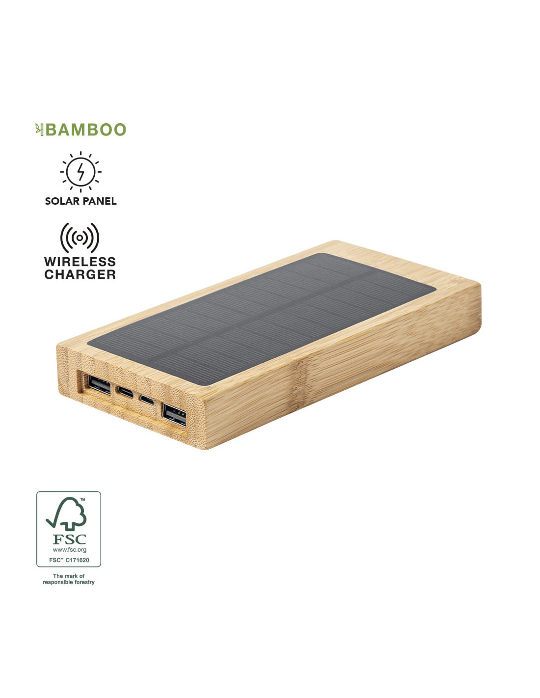 Powerbank de bambú inalámbrica con carga solar 10000 mAh
