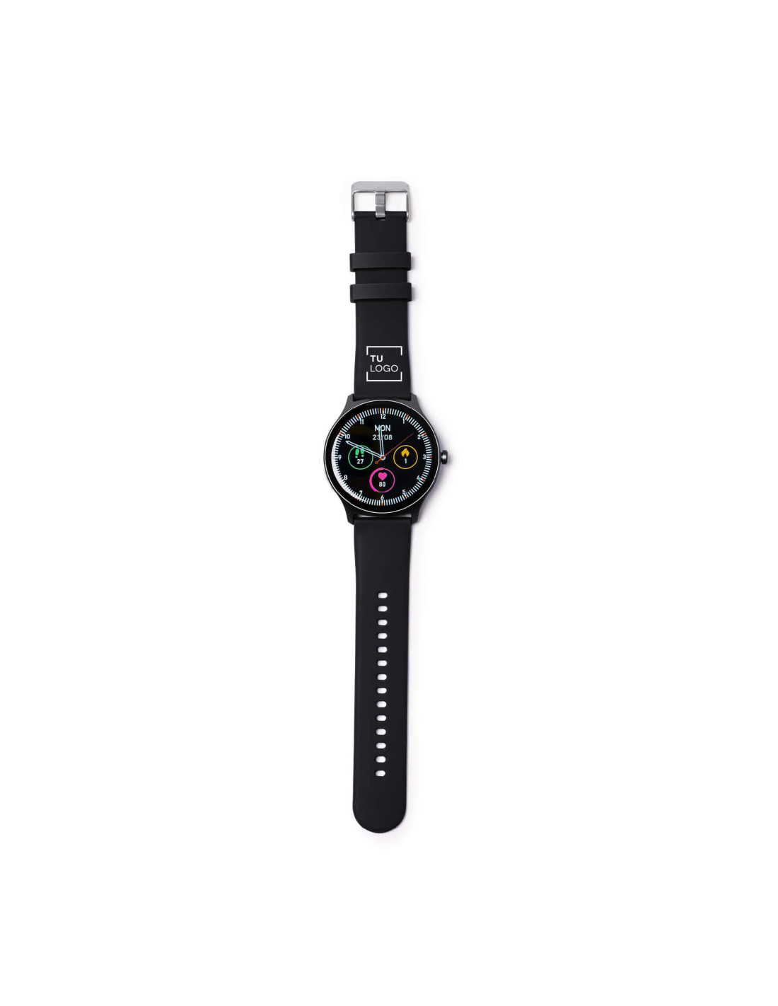 Reloj inteligente bluetooth multifunción con diseño funcional y esfera metalizada. Reloj inteligente bluetooth recargable mediante USB. Cuerpo fabricado en silicona y pantalla a color TFT de 1,39 pulgadas. APP disponible para iOS y Android. Monitorización de frecuencia cardiaca, control de llamadas y asistente por voz. Este práctico reloj inteligente viene presentado en caja individual.