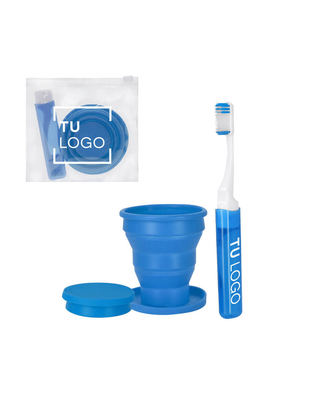 Set de higiene personal compuesto por un cepillo de dientes plegable fabricado en PP y un vaso plegable de silicona con capacidad de 200 ml, diseñado para ocupar el mínimo espacio durante viajes, escapadas o uso diario fuera de casa. El cepillo plegable permite proteger el cabezal y facilitar su transporte, mientras que el vaso de silicona se pliega fácilmente tras su uso, aportando comodidad y funcionalidad. Todo el conjunto se presenta en una bolsa de PVC transparente con cierre zip, ideal para mantener los accesorios organizados y visibles. Un set práctico para viajes, hoteles, promociones de bienestar o regalos corporativos relacionados con el cuidado personal.