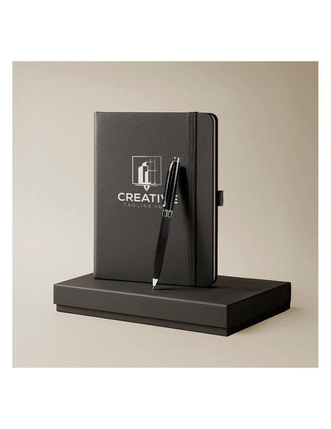 Este set de escritura elegante es el regalo perfecto para ocasiones especiales o eventos de empresa. Incluye una libreta A5 con goma de cierre y 96 hojas y un bolígrafo giratorio con tinta azul, ambos presentados en una caja de regalo premium. Su diseño combina elegancia y practicidad, ideal para ejecutivos, profesionales o amantes de la escritura. Perfecto para personalizar con logotipo y utilizar en campañas de marca. Una opción sofisticada y útil para sorprender con estilo.