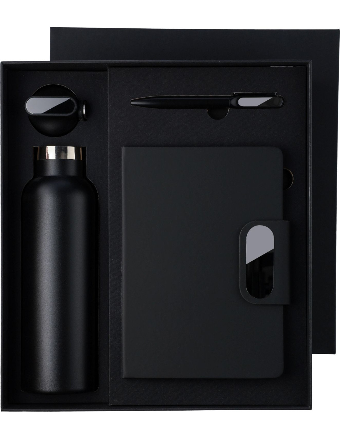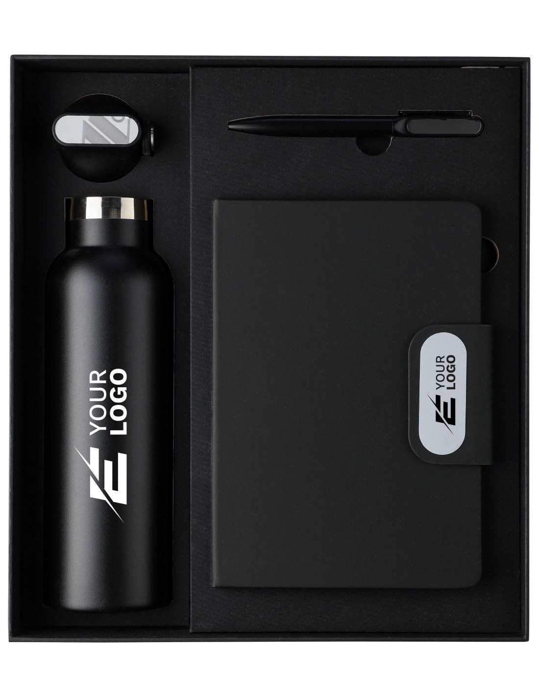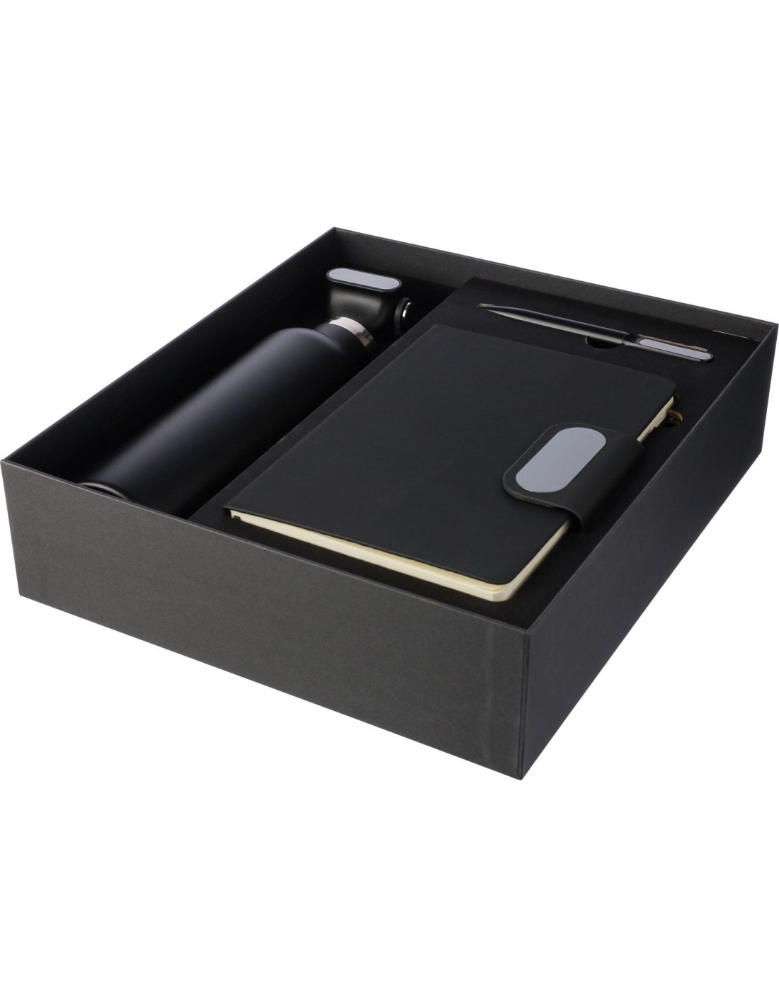 Set de regalo de botella térmica con bolígrafo y libreta reciclados