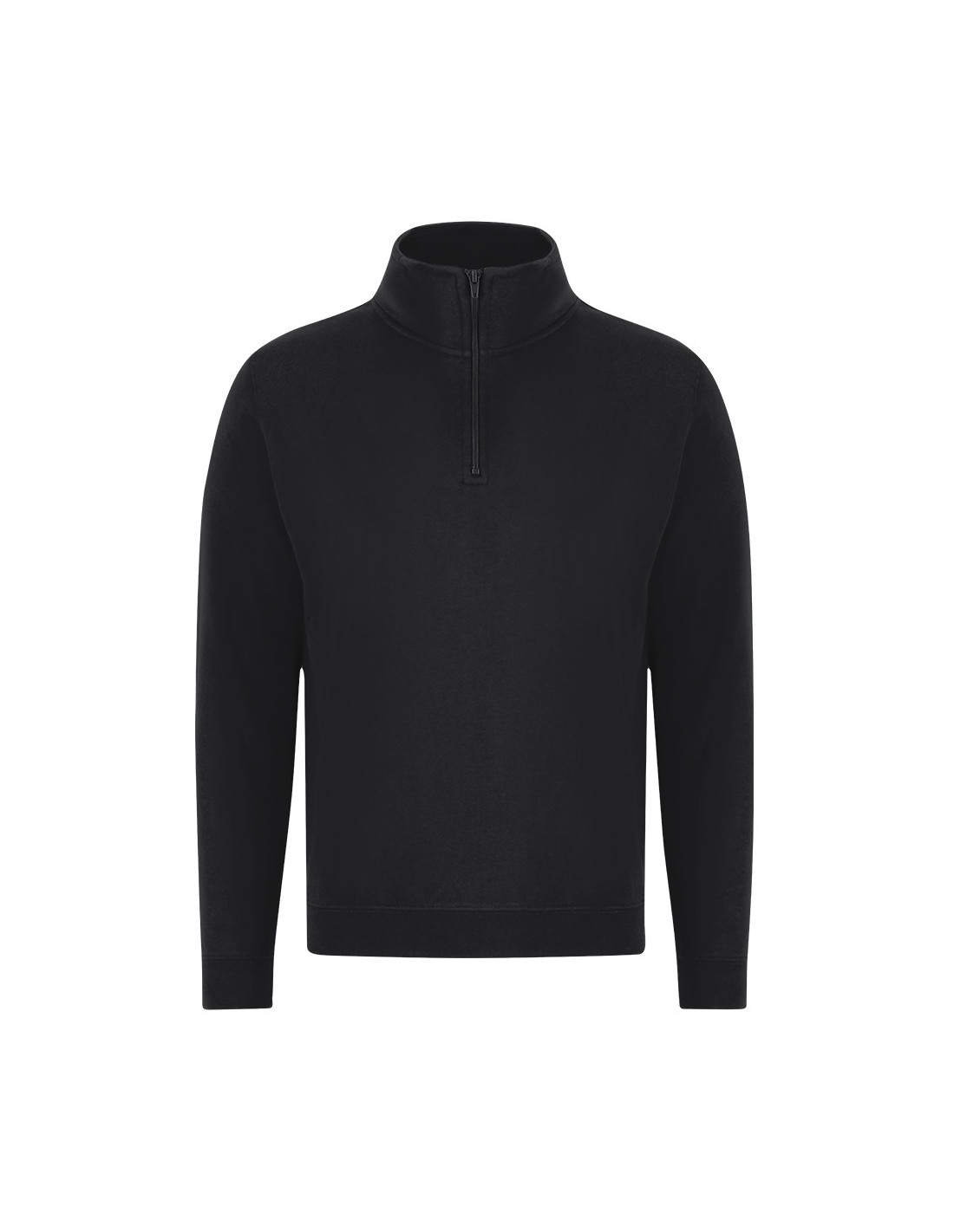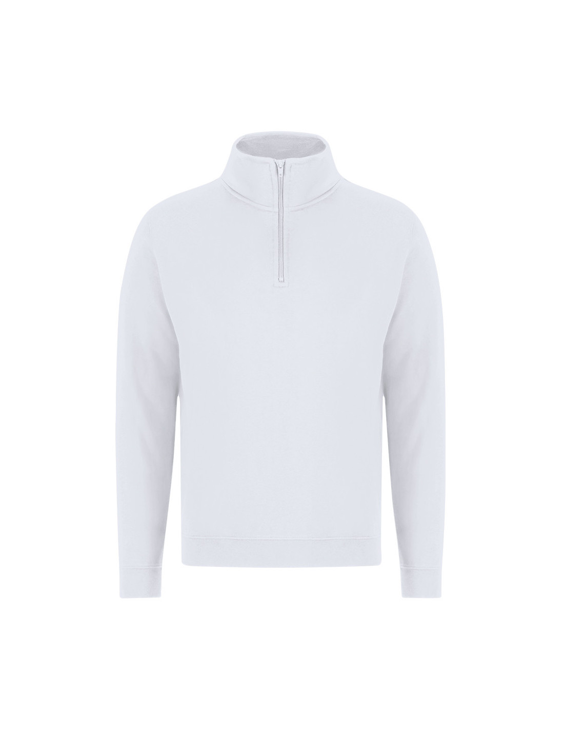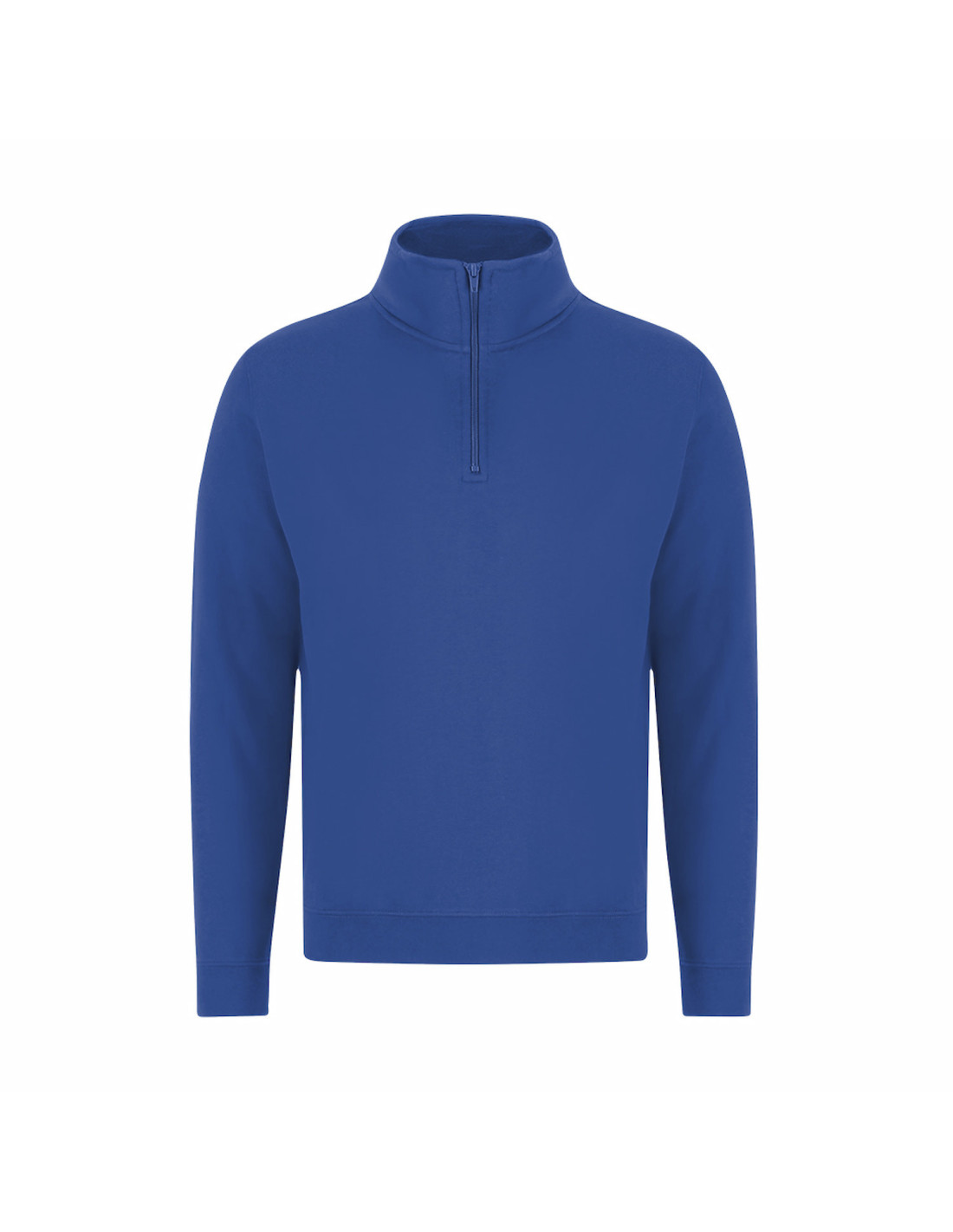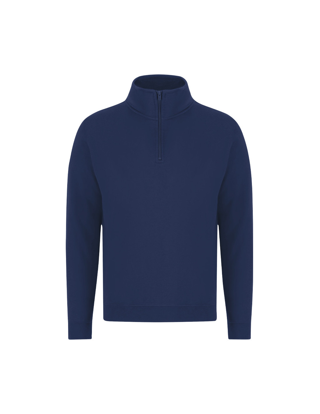 Sudadera unisex con media cremallera, confeccionada en una mezcla de algodón y poliéster en suave felpa perchada de 280 g/m², que ofrece calidez y confort. Cuenta con cuello alto doble forrado, cremallera a tono con tirador y puños y cinturilla en punto canalé 1x1 con elastano para un ajuste cómodo y duradero. Su diseño con costura lateral aporta un acabado moderno y resistente, ideal para uso diario o como prenda promocional.