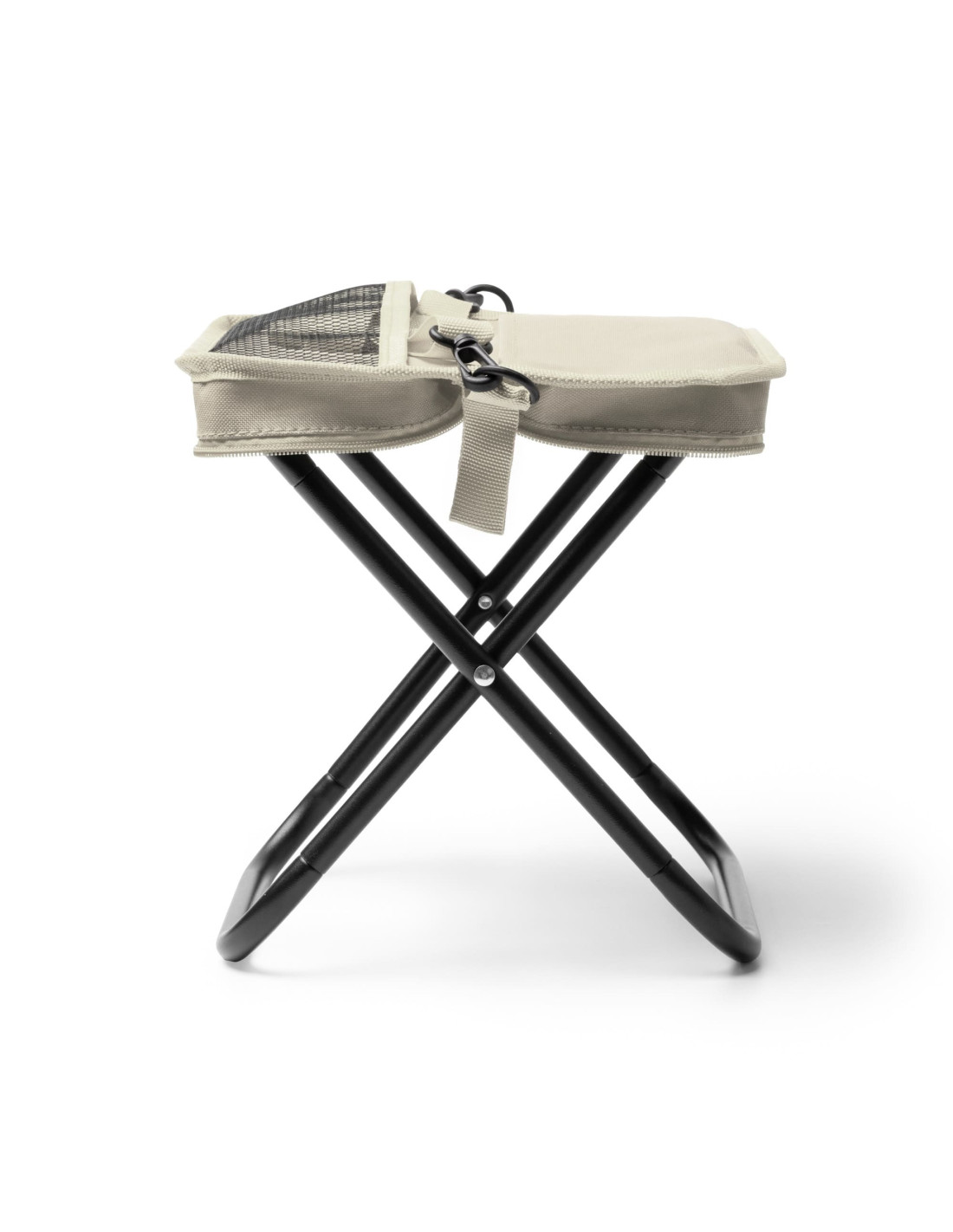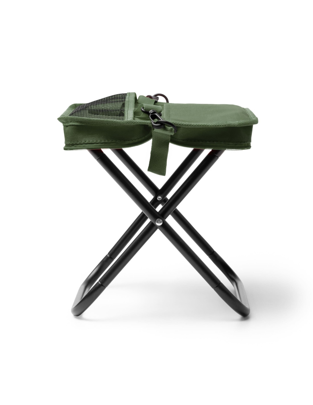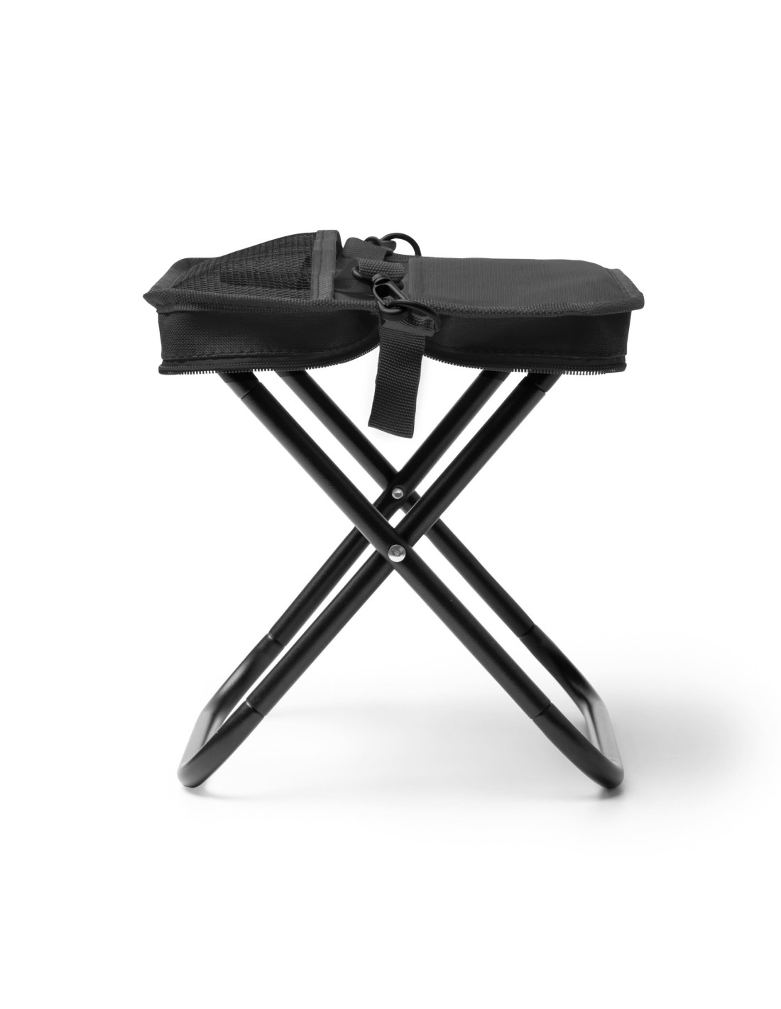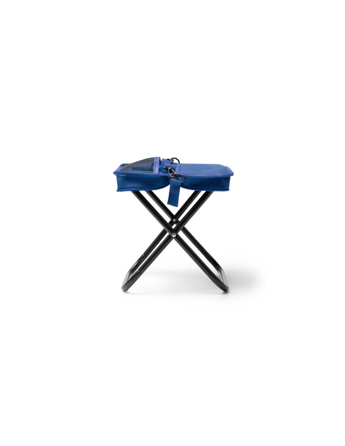 Taburete de camping plegable fabricado en RPET 600D, pensada para actividades al aire libre, eventos o uso ocasional en desplazamientos. Cuenta con una estructura ligera y un sistema de plegado sencillo que permite compactarlo fácilmente dentro de su propia funda con cierre de cremallera, facilitando su transporte y almacenamiento. Incorpora una cinta de transporte extraíble con mosquetón, lo que permite llevarlo cómodamente colgado, así como dos bolsillos exteriores prácticos para guardar pequeños objetos personales. Una opción funcional para campañas promocionales vinculadas al ocio, el deporte o los eventos, con un material alineado con criterios de sostenibilidad.