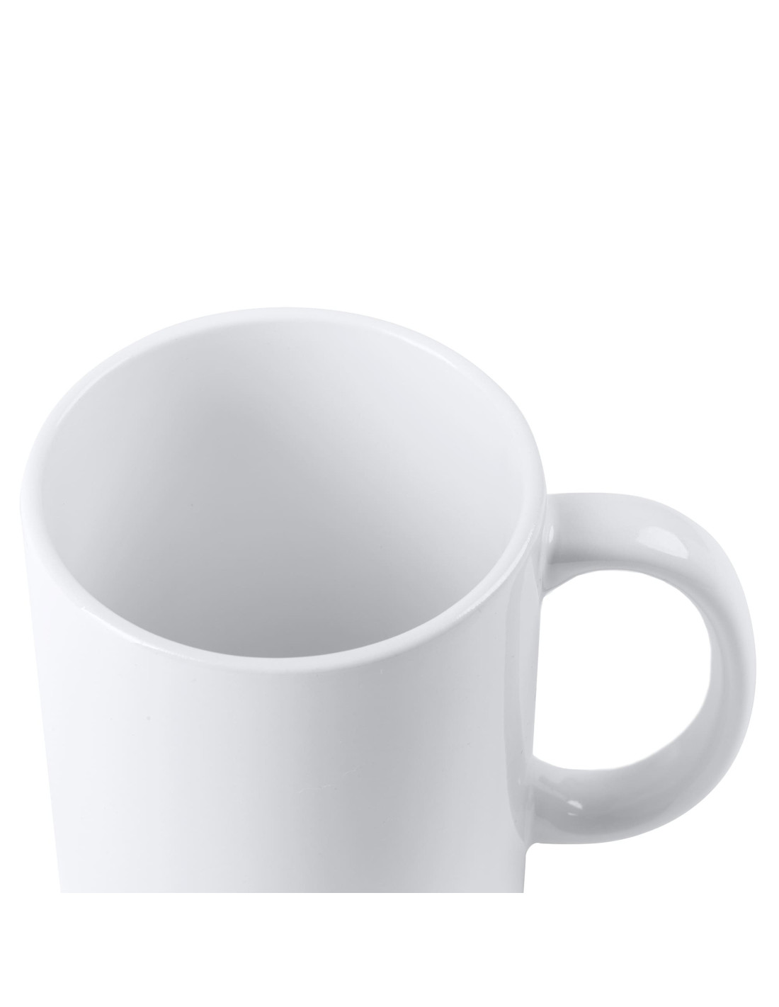Taza mug cerámica de 350 ml de capacidad. Especial para personalizar por sublimación a todo color. Presentación en caja individual de cartón básica.