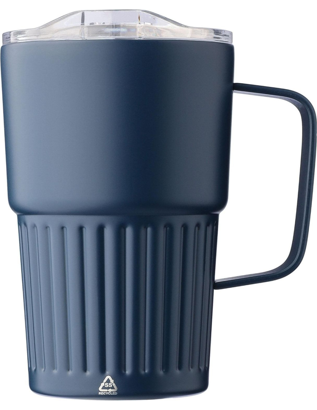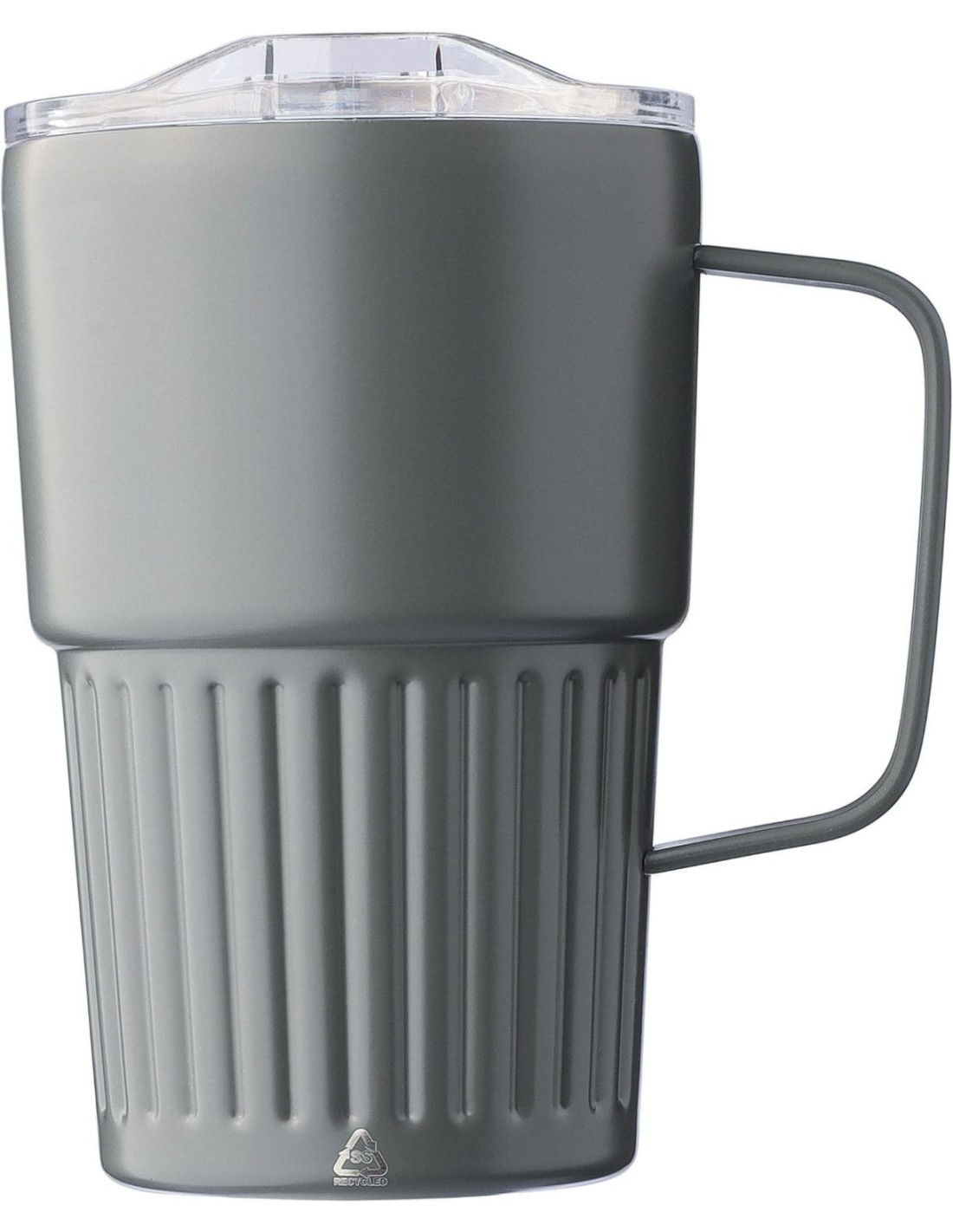 La taza termo reutilizable de 450 ml está fabricada en acero inoxidable reciclado, combinando interior 304 y exterior 201 para máxima durabilidad y aislamiento térmico. Su asa acanalada ofrece un agarre firme, mientras que la tapa deslizante de AS facilita beber cómodamente sin derrames. Incluye el logotipo reciclado grabado en el cuerpo, reforzando su compromiso sostenible, y se presenta en una caja de cartón Kraft ideal para regalo o merchandising corporativo. Si buscas una taza térmica versátil para oficina, coche o viajes, este modelo mantiene las bebidas calientes o frías durante más tiempo. Perfecta para personalizar con láser, es una opción premium para empresas, eventos o detalles promocionales con impacto y utilidad real.