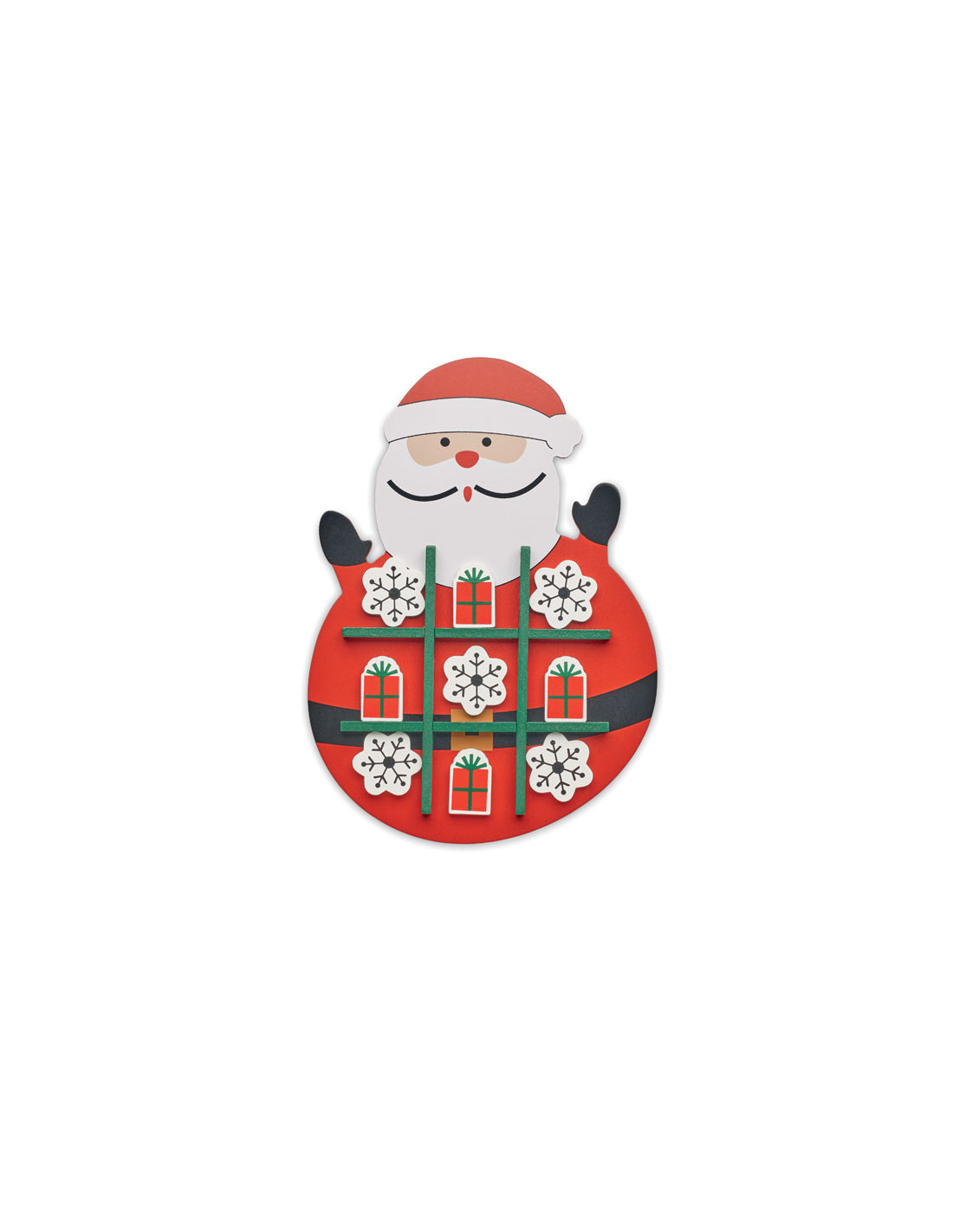 Juego de tres en raya de madera con un encantador diseño navideño en forma de Papá Noel, ideal para compartir momentos divertidos en familia durante las fiestas. Fabricado en madera con certificación FSC®, procedente de fuentes sostenibles, combina entretenimiento y sostenibilidad. Medidas: 17,5 x 24,3 x 1,5 cm. Una alternativa original a los juegos tradicionales y un regalo perfecto para niños y adultos en Navidad.