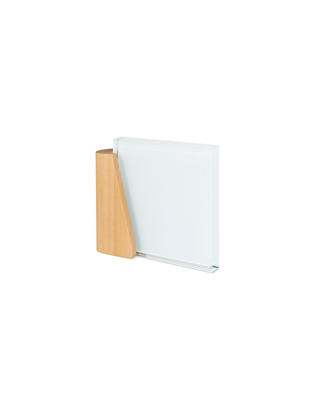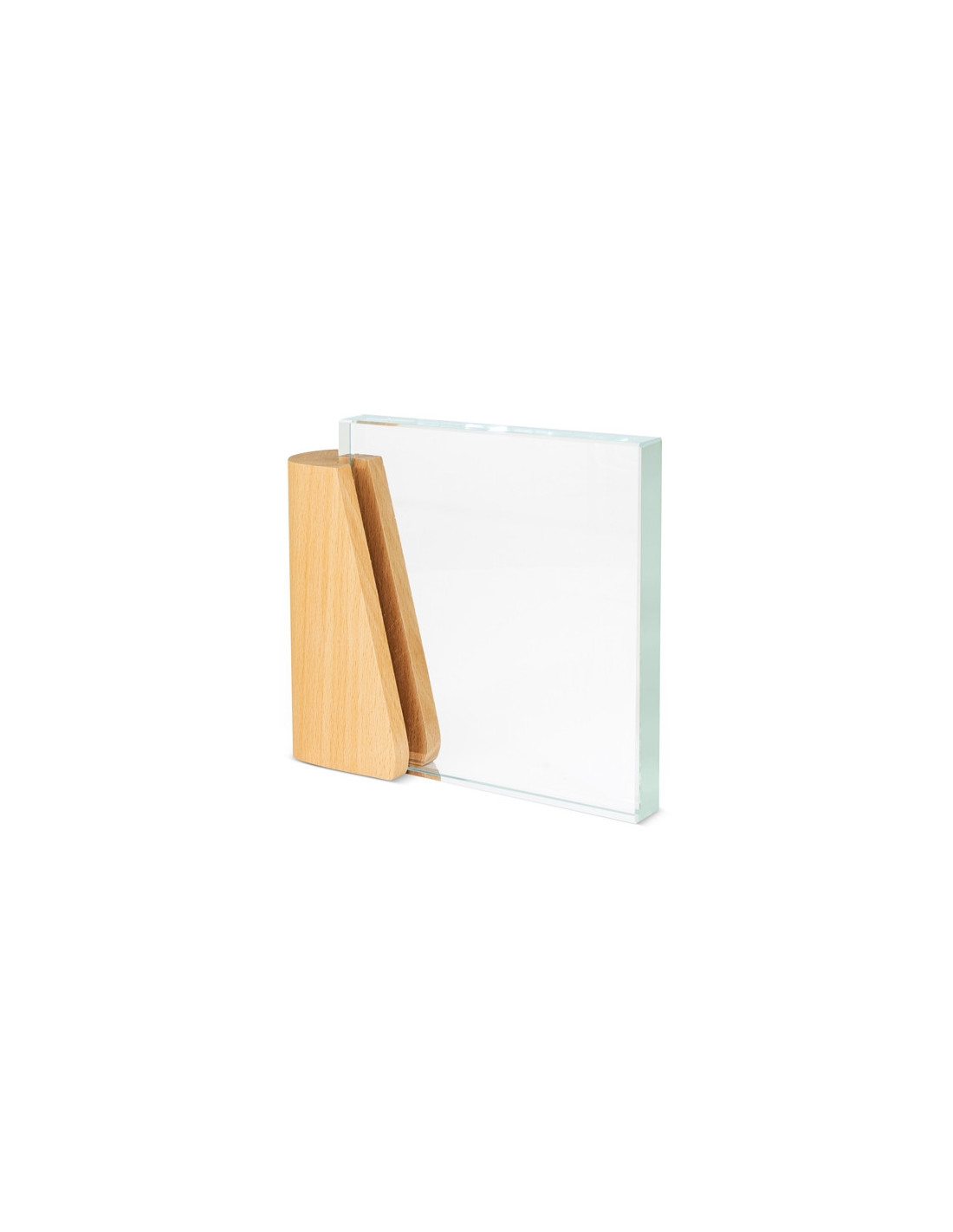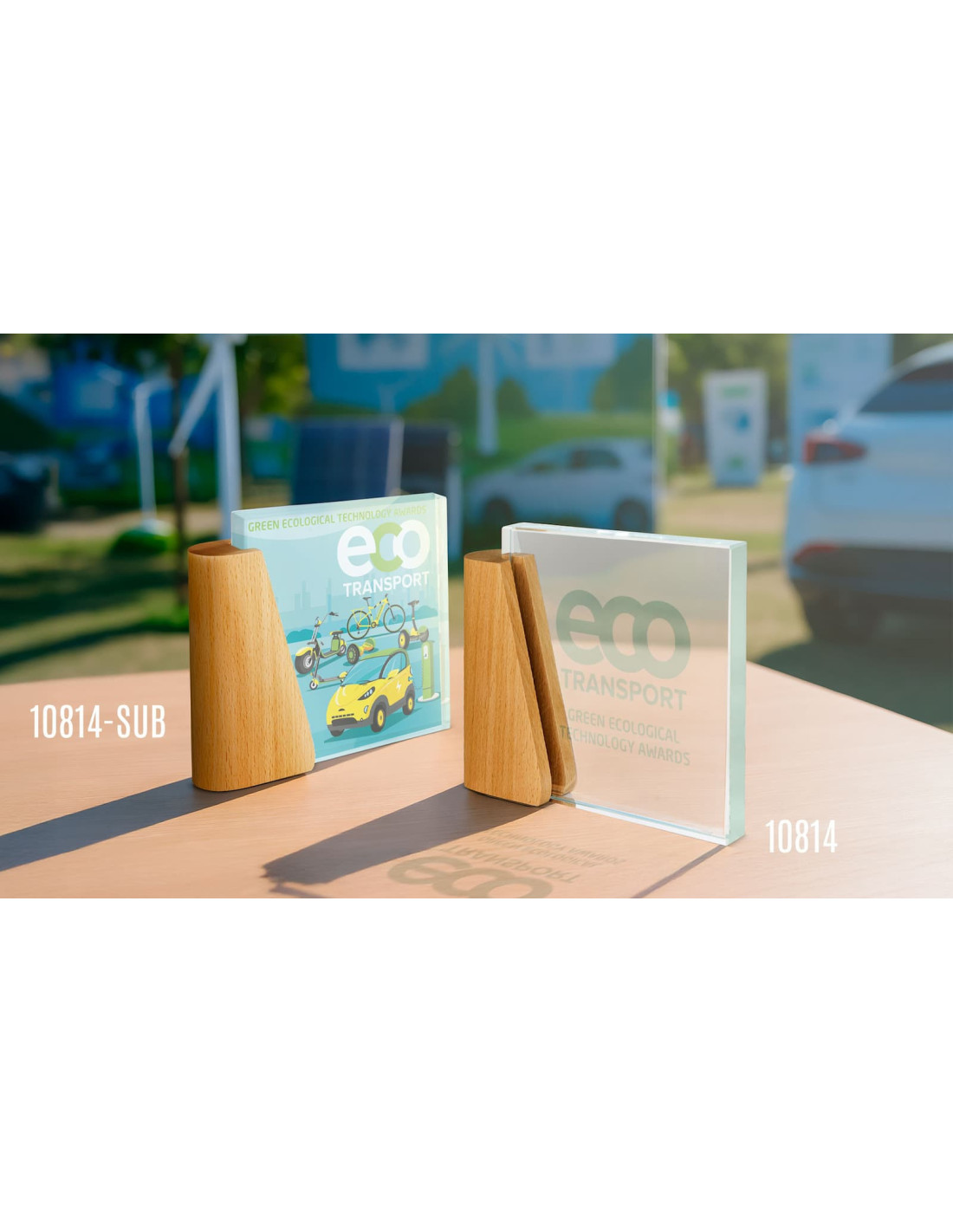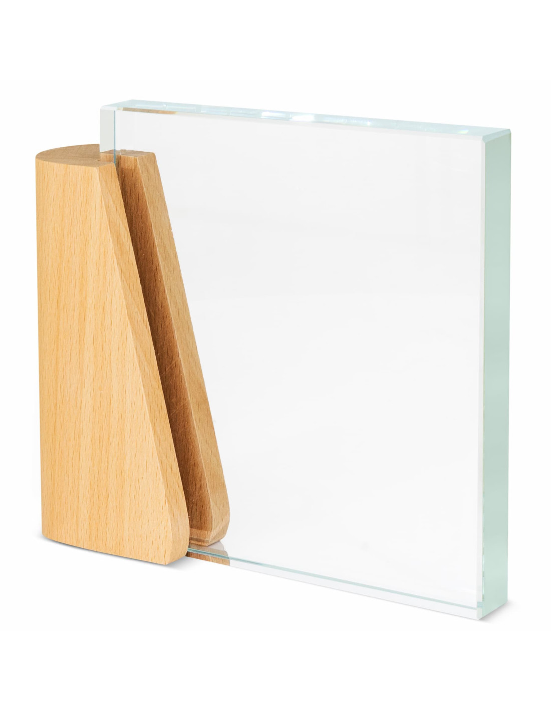 Nuestro trofeo combina cristal y madera en un diseño elegante y contemporáneo. Su base lateral de madera natural sostiene una placa de cristal cuadrada en versión transparente o traslúcida que realza cualquier grabado o logotipo. Ideal para premiar logros profesionales, deportivos o académicos, ofrece una acabado elegante. Viene presentado en un estuche acolchado con cierre imantado, que protege el trofeo con una presentación cuidada. Una opción con estilo para reconocer el esfuerzo y la excelencia.